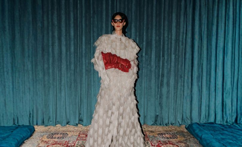 Creative director Rana Soliman curates four looks where strong prints and rich textures coexist.