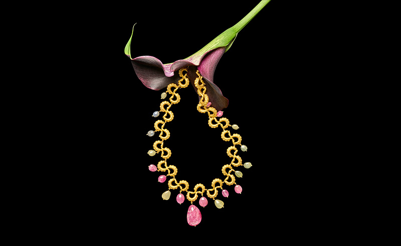 For Neamatalla, this belief in Egyptian craftsmanship and design is not abstract. It sits quite literally around her neck. She has worn the same necklace nearly every day of her life for the past thirty-eight years. It is beautiful and opulent: made up of blocks of amber, coral, wood, and Nakhla’s signature 21-karat gold. As the co-owner of Nakhla, alongside her husband, Ikram, one would think her own jewelry selection would be constantly rotating. But that is not how Neamatalla sees jewellery. “For me, jewellery is an ornament. All you need is a background for it”. While most people select their jewelry to match their mood or clothes, Neamatalla does the opposite. Everything she buys, everything she wears, has to match her necklace; her clothing and accessories orbit her necklace, as planets orbit the sun. “For me, otherwise, it’s an investment, one that will be put in a safe.” Jewellery is something that lives beside you, not something that waits silently for the right time.