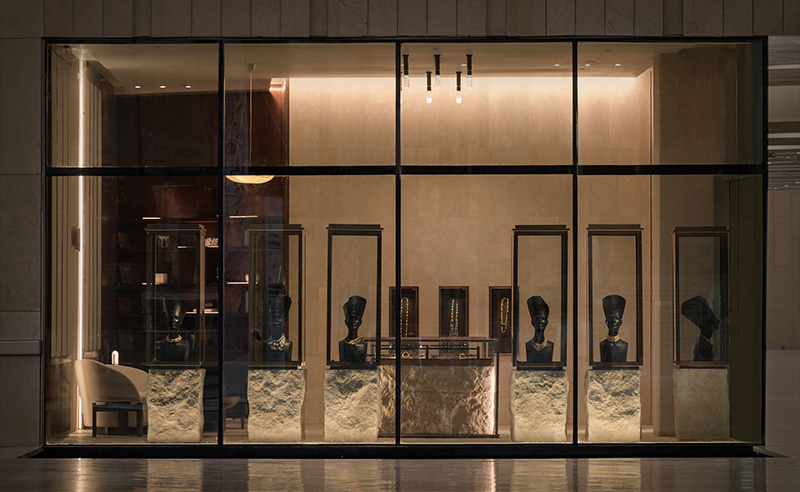 Together with Yasmina Makram and Ingy Magar, they designed the store with the same philosophy that has guided their parents’ brand for decades. Perched upon rugged stone blocks is where the jewellery is displayed, encased beneath glass not unlike the 5,000-year-old jewellery on show in the museum’s galleries.