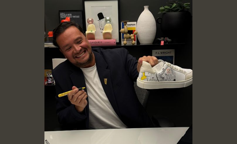 In a rare collision of art, fashion, and urban memory, Mohamed Fares, Partner and Co-founder at Alchemy and founder of MF & Associates, has joined forces with Be Native on a one-of-one, hand-drawn sneaker titled Urban Soul. The piece will be showcased at Tamara Haus from November 23 to 29, where bidding officially opens—starting at 10,000 EGP.
