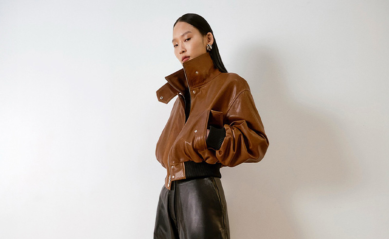 Nour Hammour’s Briar Jacket is Caramel Café in full leather armour. Think cropped biker energy with couture-level finishing: clean lines, sharp shoulders, and a warm, glazed brown that looks poured, not dyed.