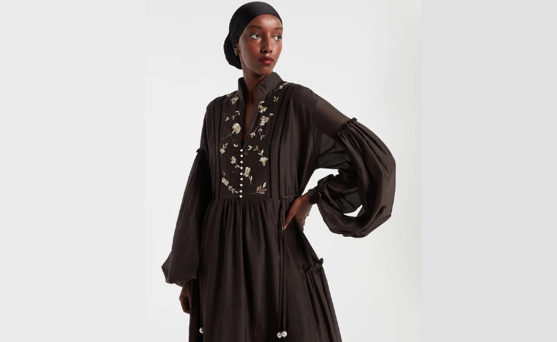 A pool of molten velvet with lazy-luxe drape. The rich cocoa pile catches light like ganache, turning a classic abaya into evening wear with attitude. Belt it, float it, or let it puddle—either way, it’s satin truffle energy.