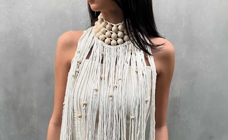 Organic yet commanding, Rebirth’s Kai Neck Piece is sculpture you can wear. Ropes of handwoven texture cascade like waterfalls of light, anchored by bold beads that sit at the throat. It’s part jewellery, part armour, entirely unforgettable.