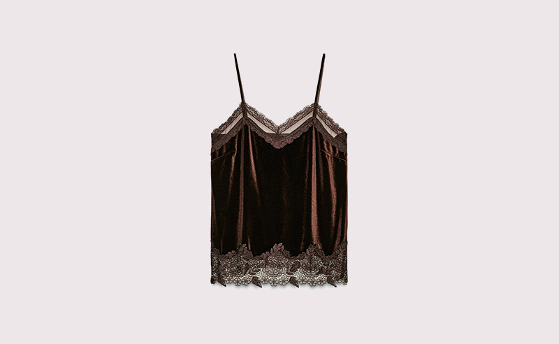 Zara l Velvet Camisole Top with Lace Trim