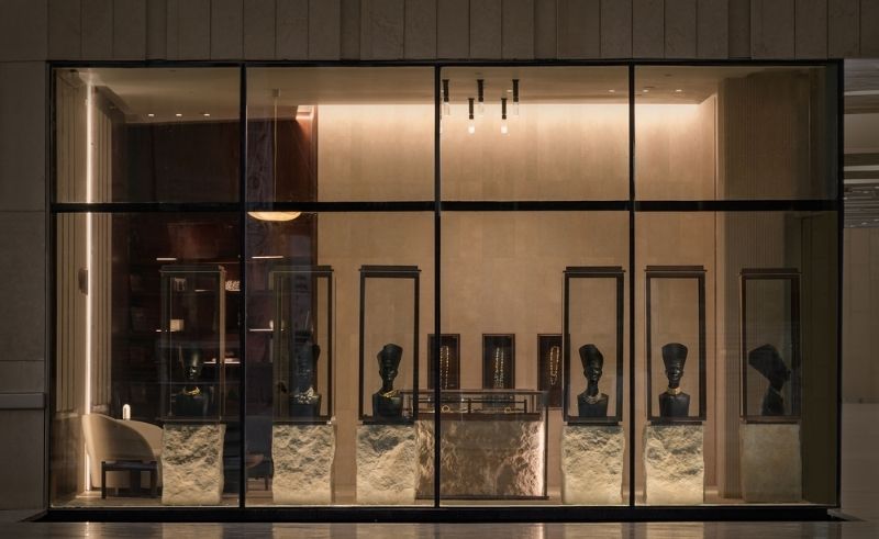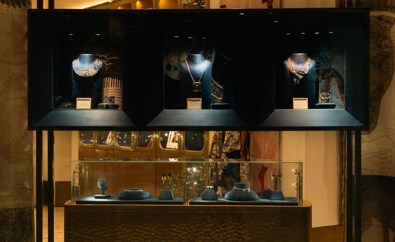Egypt’s most iconic jewellery house, where gold and silver are etched like miniature inscriptions. These pieces sit in conversation with the artefacts nearby — poetic, symbolic, and steeped in the region’s visual language.