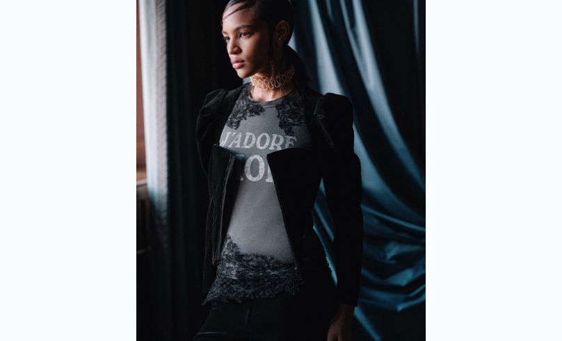 Because even the most ironic closet needs one bougie statement. Dior lettering, lace paneling — she wears it like it’s thrifted.